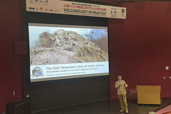 Rikuto Daikai presented his work on the movement of the Unzen dome measured from GBSAR, EDM, LiDAR and drone photogrammetry, while Prof. Gomez presented work on the evolution of the Unzen gullies using LiDAR and SfM-MVS photogrammetry. Both presented in English to an audience from New Zealand, USA, UK, Singapore, Indonesia, the Phillipines, Japan, etc.