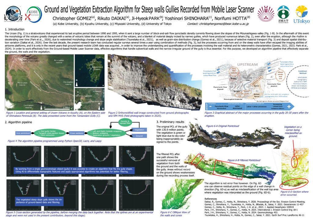 ConferencePoint CloudJPGU2026: Ground and Vegetation Extraction Algorithm for Steep Walls Gullies Recorded from mobile Laser Scanner kaikikazanbear22 hours ago22 hours ago01 mins C. Gomez, R. Daikai, J-H. Park, Y. Shinohara, N. Hota. Post navigation Previous: New publication on Marine Pollution – Macroalgal growth inhibition assay for screening coastal water pollution Leave a Reply Cancel replyYour email address will not be published. Required fields are marked *Comment * Name * Email * Website Save my name, email, and website in this browser for the next time I comment.